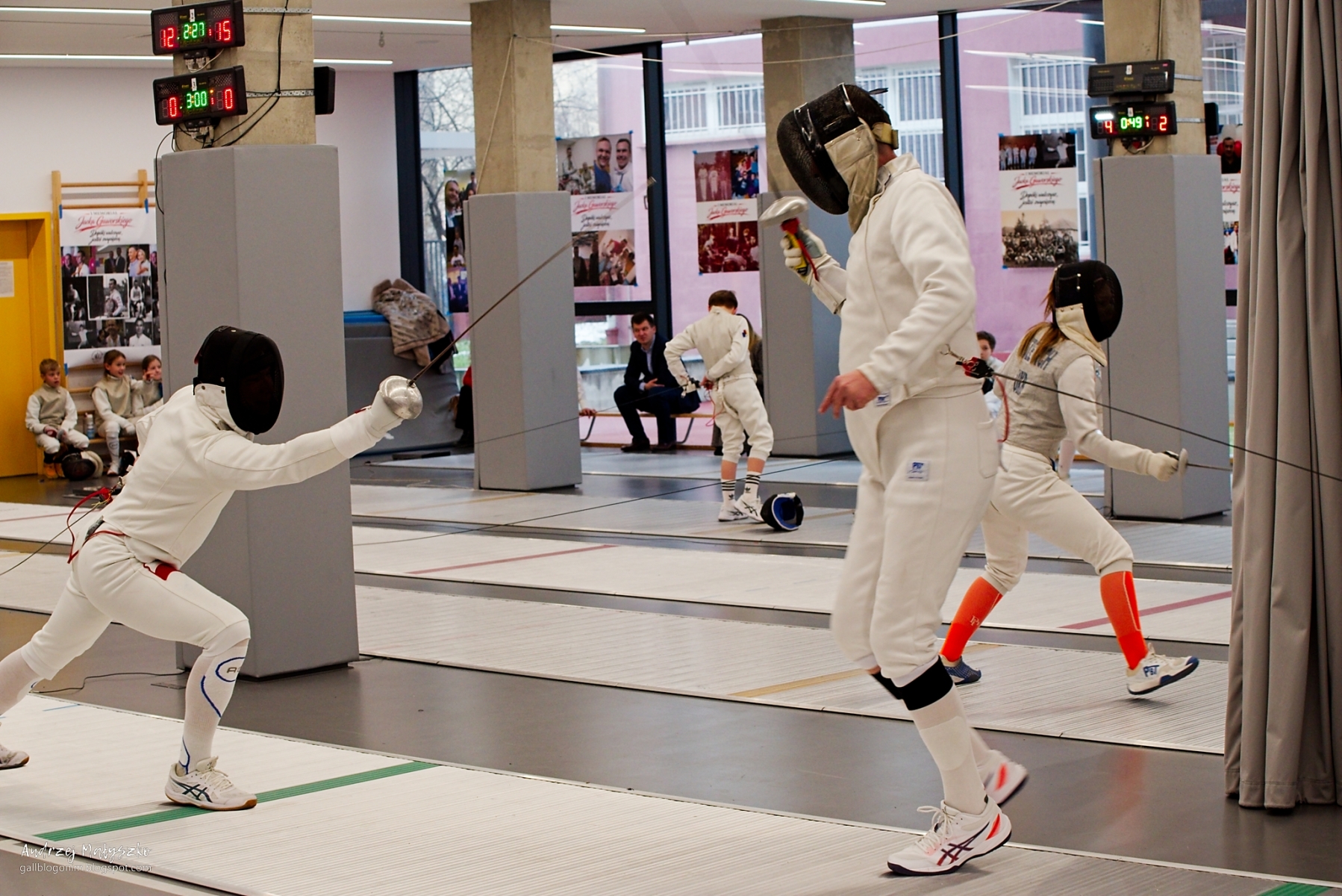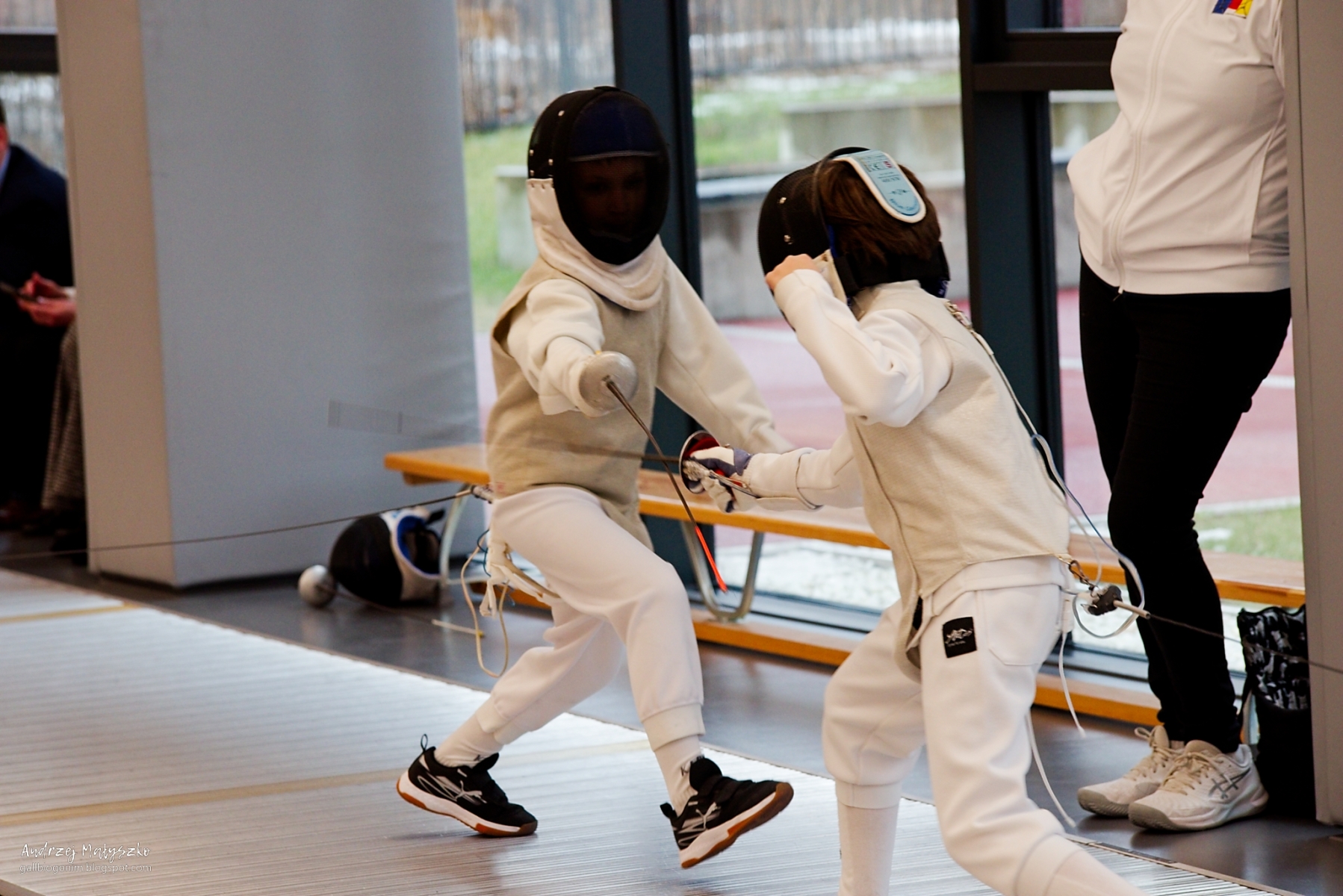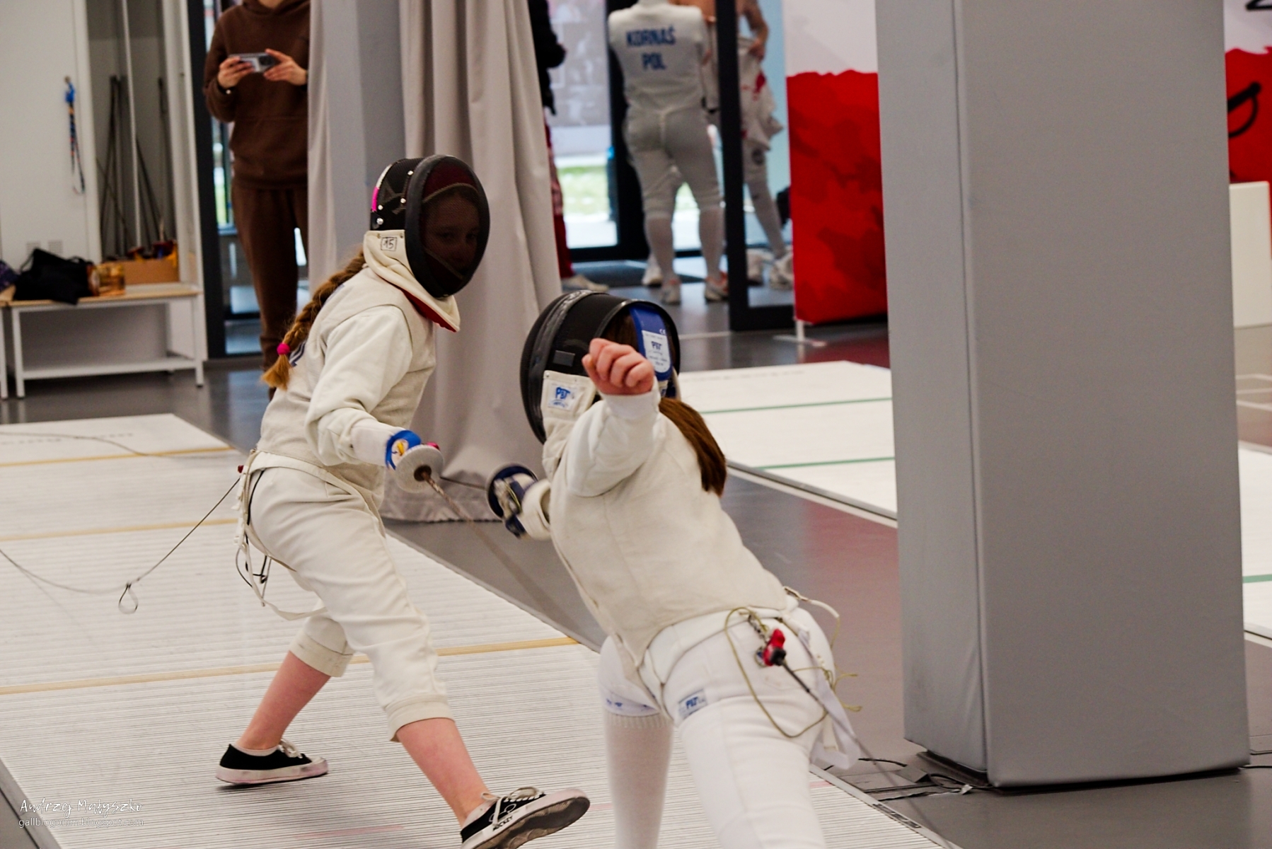 Panuje opinia, że Pentaksy nie grzeszą zbyt dobrym (szybkim) autofkusem. Na zwodach sportowych tej marki nie widać, królują Canon, Nikon i Sony. Trudno się z taką opinią nie zgodzić, ale popatrzmy, jak to wygląda w praktyce. W dniach 21-22 lutego 2026 r. odbył się szermierczy I Memoriał im. Jacka Gaworskiego. Szermierka to sport dynamiczny, zawodnicy szybko przemieszczają się po planszy, zmienia się odległość między nimi i nic właściwie nie jest przewidywalne. Jeśli dodamy do tego, że fotografujemy raczej wąskie plany, dla autofokusu jest to wyzwanie. Pomijając szybkość reakcji, pozostaje pytanie: punktowo, matrycowo, single czy continuous? Właśnie podczas tych zawodów przećwiczyłem różne ustawienia. Od razu dodam, że pomiar punktowy raczej się nie sprawdza, szermierze są zbyt ruchliwi, punkt ostrości nie trafia tam gdzie chcemy. Ale pomiar matrycowy, zarówno single jak i continuous sprawował się nie najgorzej. Może nie było komfortowo, ale po nabyciu wprawy wyniki są akceptowalne.